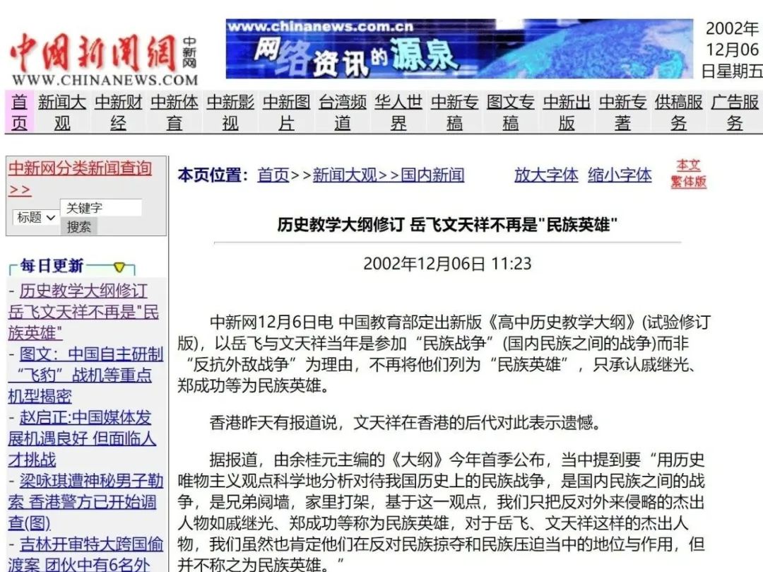 如此一来,区别也就出来了,专家们的小心思也暴露无疑。在他们看来,虽然岳飞依然有民族英雄的称号,但却是写在不显眼的地方,而且用的是“人民视岳飞为民族英雄”,只是民众的看法,并非是他们的看法。和金人不同,日本人虽然也侵略过中国,但并没有成功,在其发动侵华战争14后,就被中国人民赶了出去,没有能够像金人建立起长久的政权。既然成功了,在专家们看来,那就是华夏的一分子了,和华夏之间的战争就是“内战”了。这真是一种令人啼笑皆非的历史观和价值观,是不是自己人不看对方的本质,而是看对方是否侵略成功。持这样的一种价值观,难道是想要培养出新时代的叛国者吗?当然,戚继光等人民族英雄的称号也并不是那么靠得住的。如果日本像金人那样,成功地侵占中国大片领土,并且建立起长期稳固的政权,是否戚继光也就不是民族英雄了?假如有一天,中日两国成功并为一国,是否明朝时期的倭寇之乱就成为华夏的“内部矛盾”了?