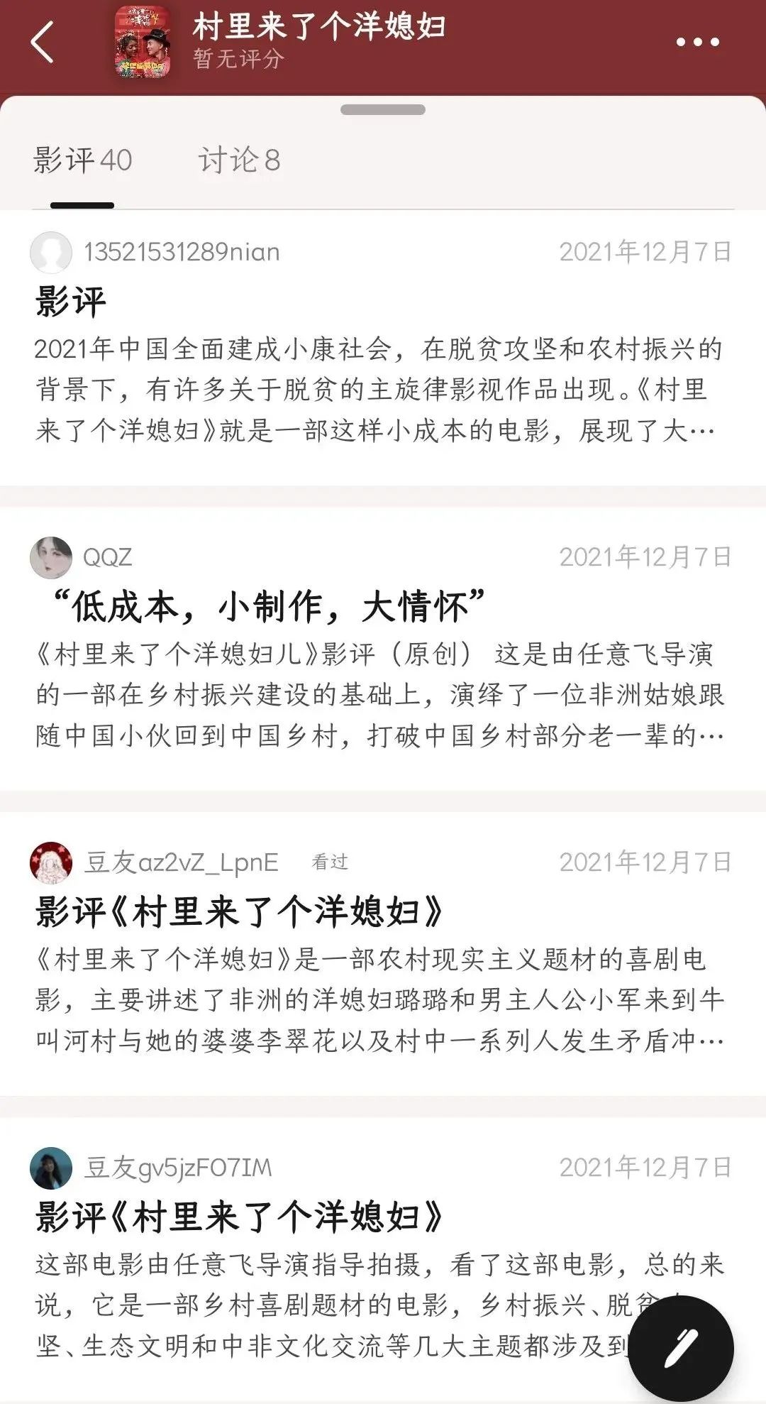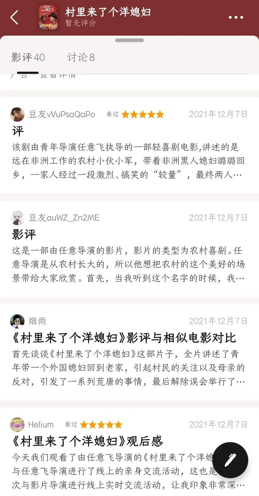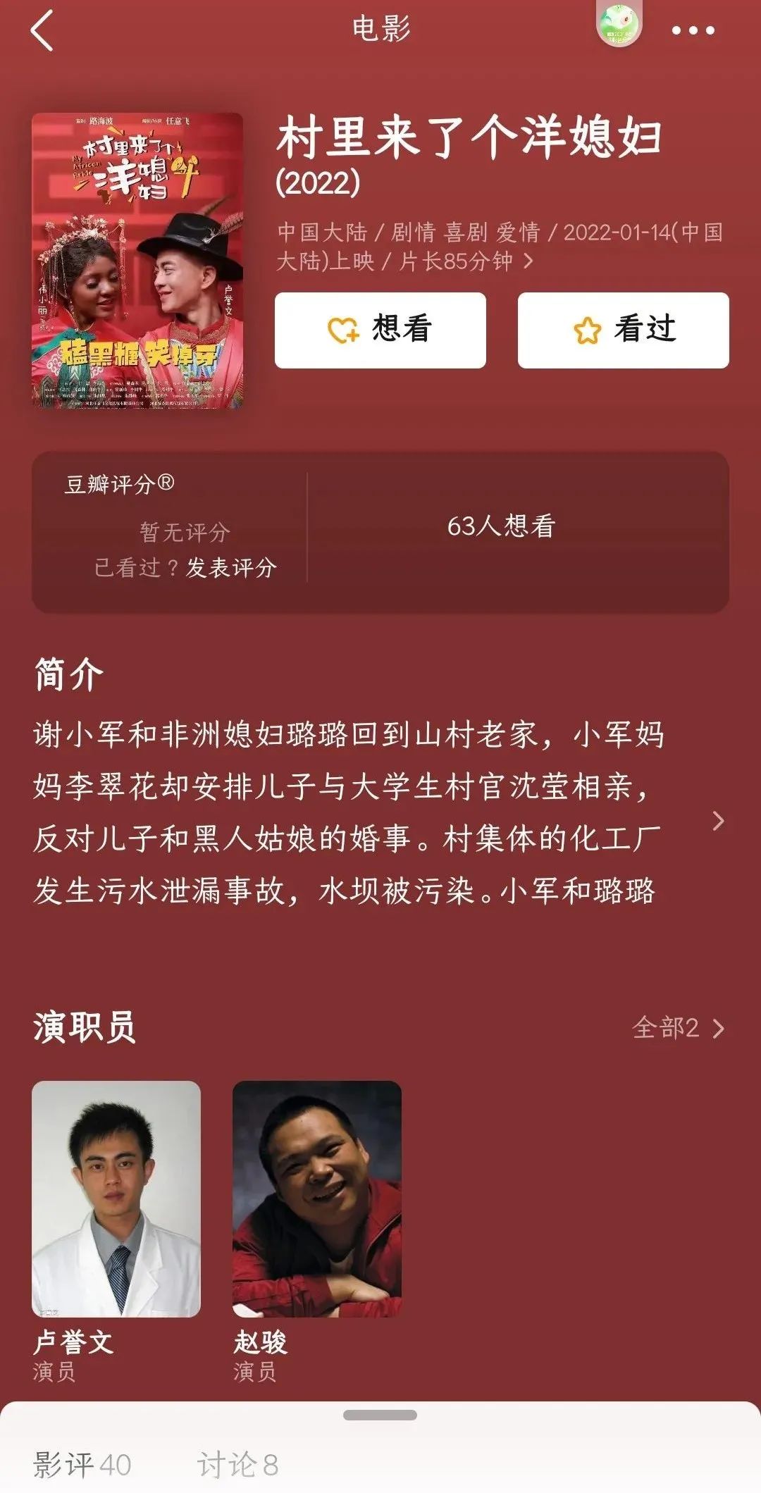 今天(2022年1月14日),一部名叫《村里来了个洋媳妇》的电影上映。