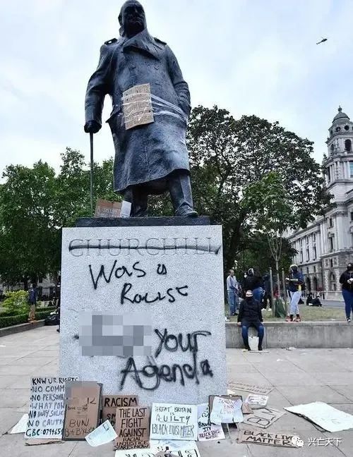 再比如说英国的黑人发动暴乱,将丘吉尔等人的雕像给推倒,扔进了河里,还给他贴上了“奴隶主”的标签。