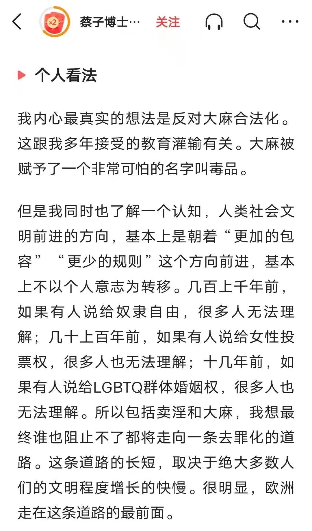 (某位博士的所谓“清醒”言论,竟然认为大麻合法和LGBTQ是所谓进步)