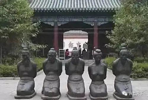 岳飞可是说是我国的一位家喻户晓的大英雄,他领兵抵抗金人的侵略,屡立战功,国人对他也是非常的钦佩。但由于昏君赵构和奸臣秦桧的陷害,致使岳飞蒙冤被杀。一直以来,人们都在为他喊冤。岳飞死后被安葬在西湖边上,人们在这里筑起了岳王庙,用来纪念他。到了明代,又打造了四个铁俦的人像,让他们永远地跪在岳飞坟前,向岳王谢罪,这其中即是秦桧。