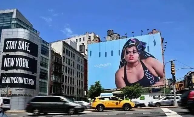 (如此丑陋不堪的模特,竟然矗立于纽约豪华大街。那是因为人家是黑人、变性人、同性恋、动保主义者……,绝对的“弱势群体”)