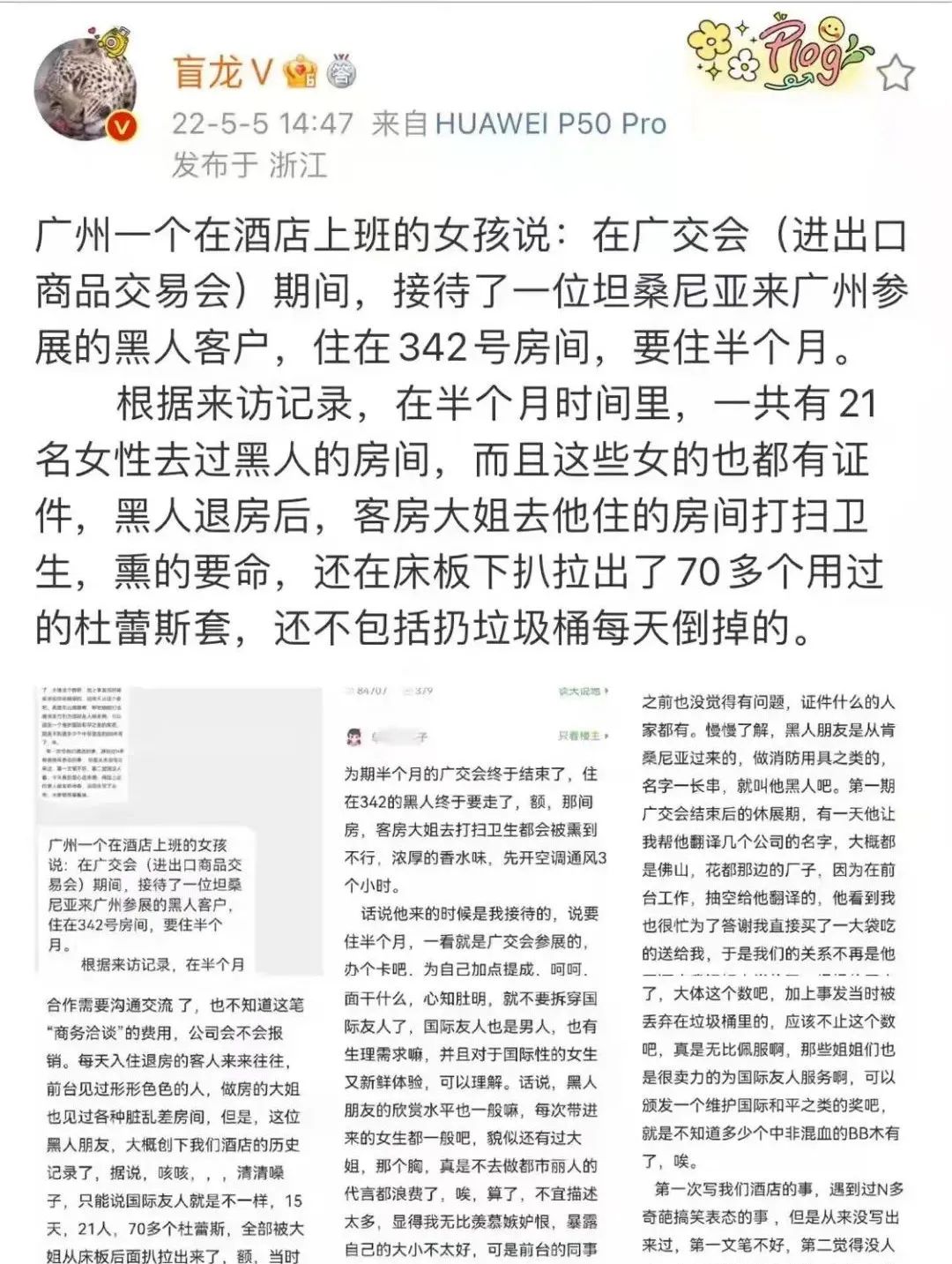 而这样的一种现象,在广州的一些地方更为明显,据一位朋友所说,有一位来自于坦桑尼亚的黑人客户,在半个月的时间内,一共有21名女性出入他的房间。