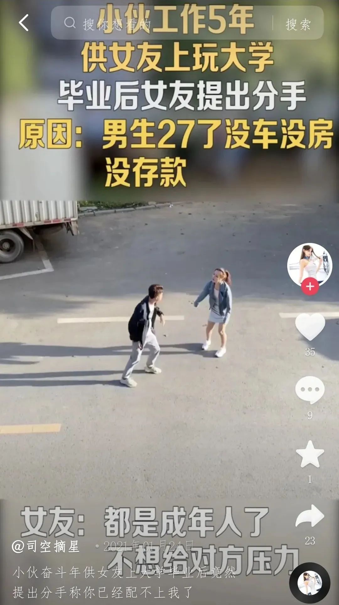 最近的几则新闻让人感觉很是无语,一是一名大专生送了几年外卖供女友读到了博士,女友毕业之后支要求分手; 一是一名建筑工给了女方18 万元彩礼,却被对方挥霍一空还提出了退婚,法院判还12 万,但女方分文不给,男方拉横幅要钱却被警方制止。