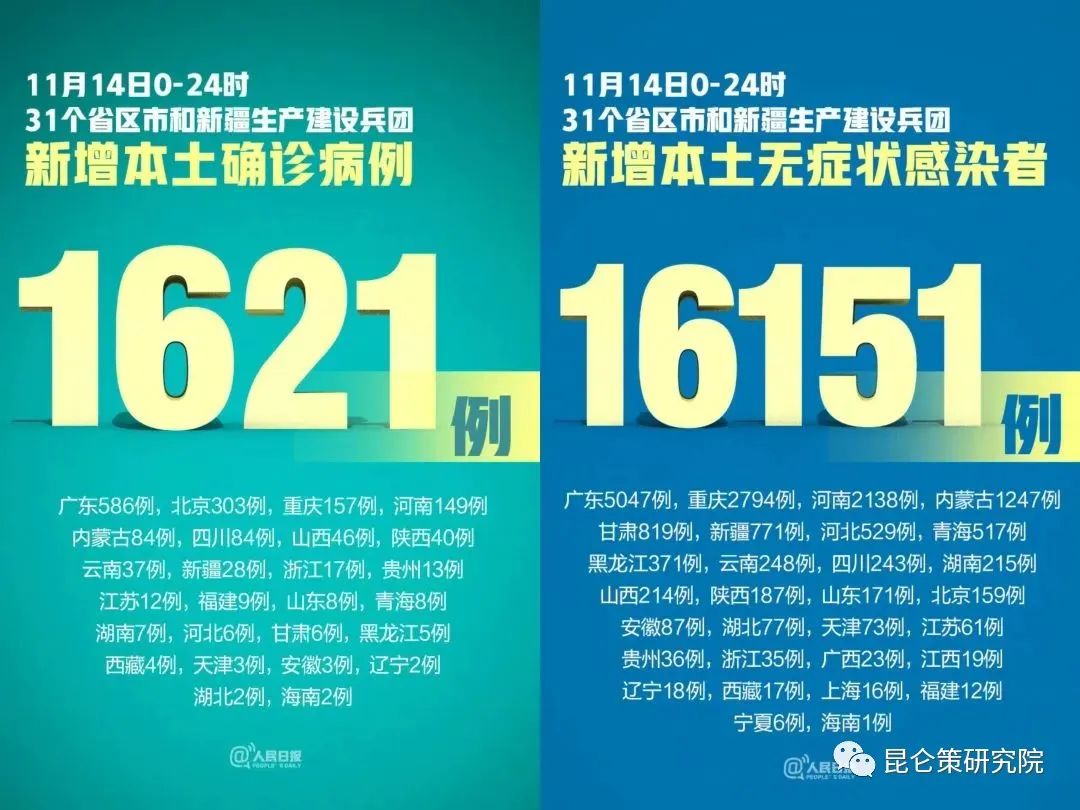 下图是从11月14日回溯至11月10日的疫情变化,本土新增病例已经连续5日过万: