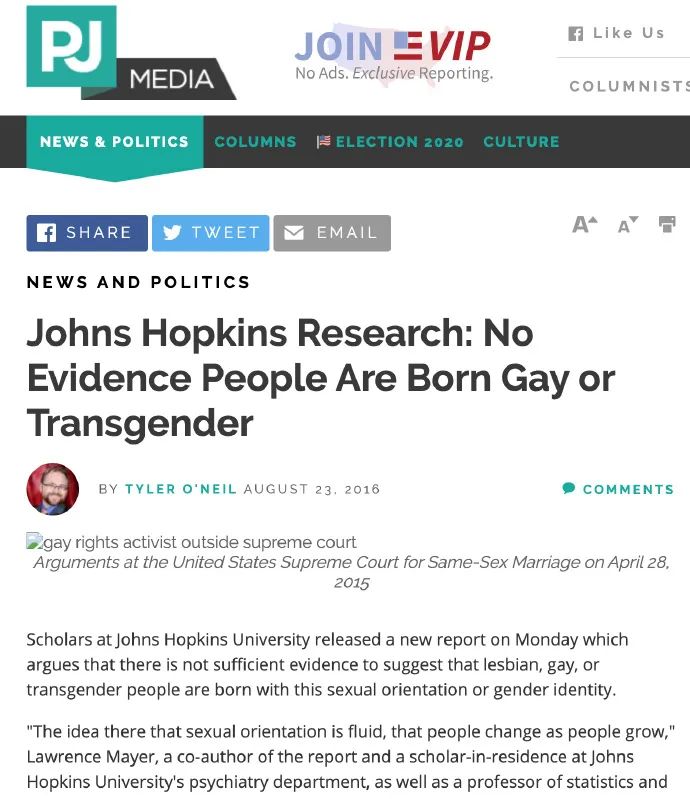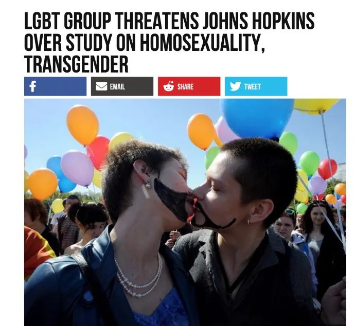 约翰·霍普金斯大学研究显示:“无科学证据显示同性恋和变性人是天生如此,同性恋,变性人精神失常概率更高。”