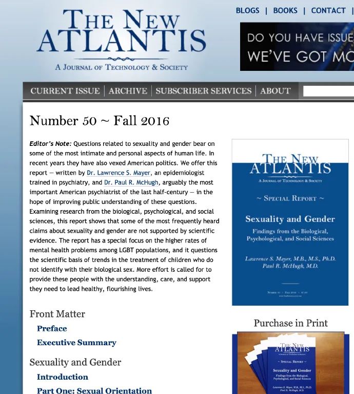 公布新冠肺炎全球数据的权威机构:美国约翰·霍普金斯大学的研究者,曾在学术刊物The New Atlantis 发表报告《性与性别》Sexuality and Gender称: