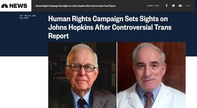 可是,美国最大的LGBTQ权益机构“人权运动”(HRC)称:如果约翰·霍普金斯大学不与这篇报告“疏远距离”,将会采取惩罚行为。