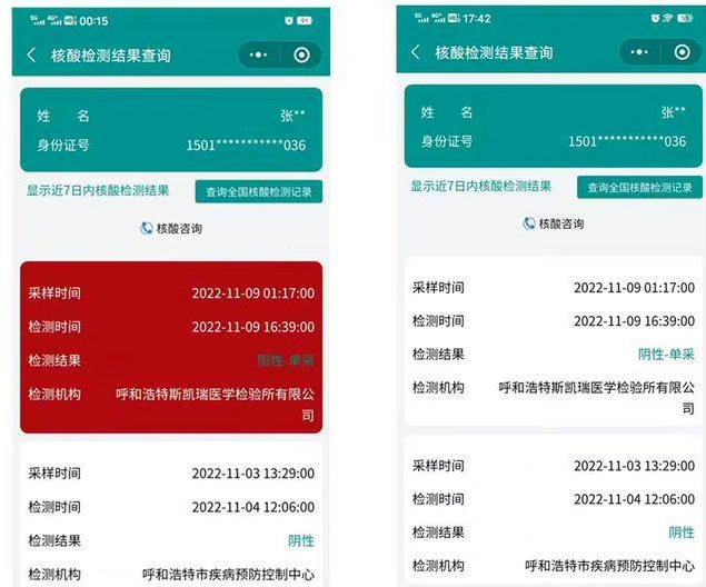 而在内蒙古集宁市,有些人收到了他们的核酸检测结果。