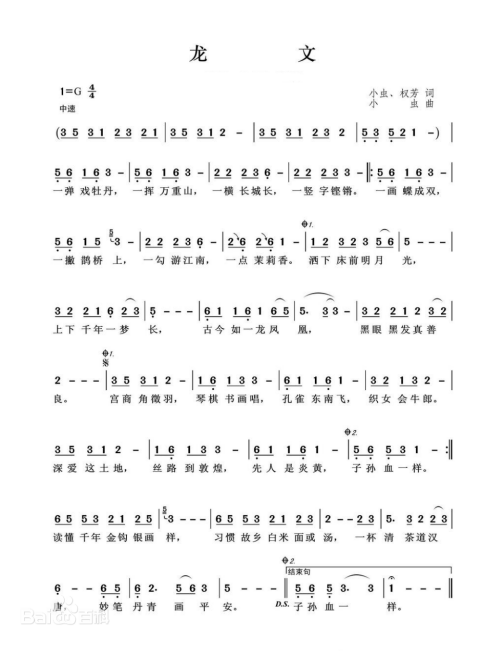 最后笔者介绍一首歌曲《龙文》,这首歌曲是由台湾著名音乐人小虫参与创作的一首歌,歌词振奋人心,唱出了我们炎黄子孙的心声。