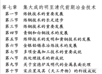 何堂坤的《中国古代金属冶炼和加工工程技术史》也只写到清前期。这里的“集大成”这个形容词,所说的内容大部分都是明朝。