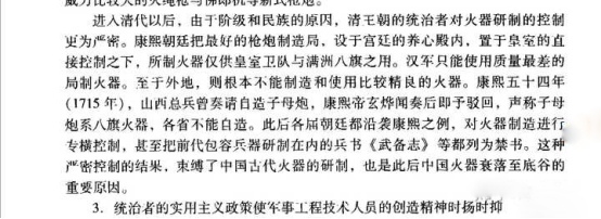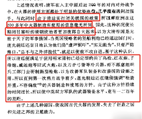 可以这么说,是清朝一举造成了我国和西方一二百年的差距!下图也是王兆春书里的内容。