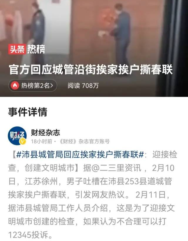 无独有偶,之前还有些城市为了创建文明城市,挨家挨户把老百姓的春联撕了。