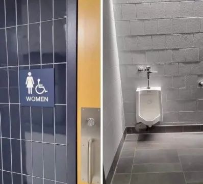 (女厕所里面摆放男性小便池,美国真是越来越魔障了)