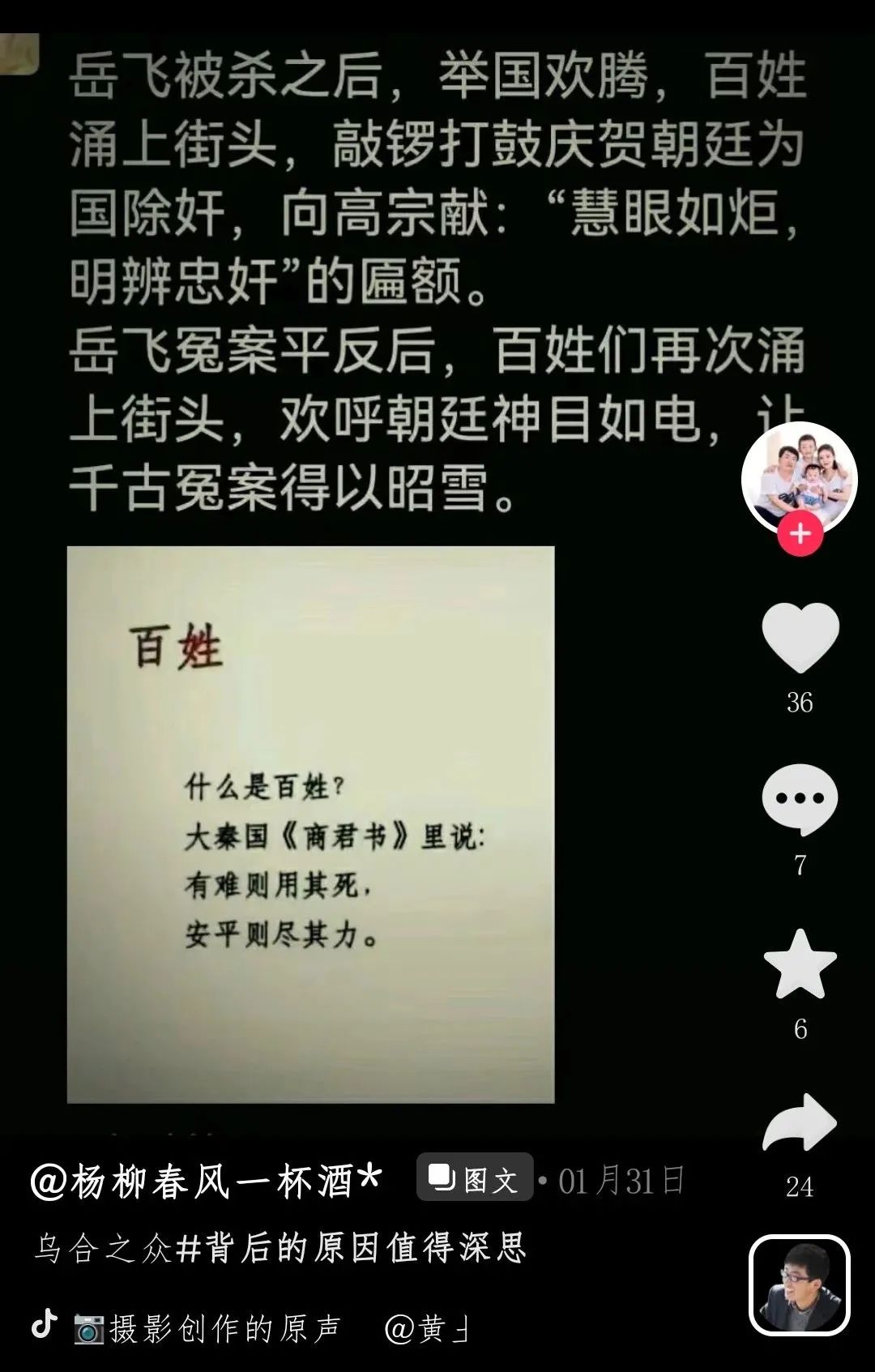 相信许多读者都看到过类似的文案,而且许多人都在不停地传播着。每隔一段时间,总会有一些人冒出来,抱着一种“天下皆睡我独醒”的姿态,传播着他们编造出来的东西。这些人总是喜欢抹黑岳飞,洗白秦松,以表现自己的“独具慧眼”,“不和愚民一般见识”。他们将岳飞说成是不通世故、情商低甚至拥兵自忠、居心叵测之人,而将秦桧说成了忍辱负重、识大体、有智慧的政治家。(某厅官编写的《秦桧大传》,为秦桧翻案,抹黑岳飞)他们通过这种方式,潜移默化地想要改变人们的价值观,以此达到堡垒从内部攻破的目的。今天,笔者就来梳理辟谣一下关于岳飞被害的这个谣言。他们说岳飞被害之后举国欢腾,百姓涌上街头,敲锣打鼓庆贺朝廷除去奸贼。这些人还煞有介事地说,百姓向高宗赵构献上了“慧眼如炬,明辨忠奸”的匾额。岳飞被平反后,百姓们再次涌上街头,欢呼朝廷神目如电,让千古冤案得以昭雪。《宋史·秦桧传》是这样说的,“(绍兴十一年)十二月,杀岳飞……子云及张宪杀于都市,天下冤之,闻者流涕。”《宋史·万俟卨传》:“飞父子与宪俱死,天下冤之。”《三朝北盟会编》卷二百零七记载:“飞死于狱中,枭其首,市人闻之,凄怆有堕泪者。”卷二百零七《卷侯传》记载:“侯中毒而卒,葬于临安菜园内,天下闻者无不垂涕,下至三尺之童皆怨秦桧。”卷二百零八《林泉野记》记载:“云、宪坐斩,赐岳飞死,年三十九,妻子徙岭外,天下冤之。飞略知书传,礼士恤民,所至秋毫无犯,民不知兵。”卷二百二《中兴姓氏录》记载:“(秦桧)又忌岳,亦与张俊不协,罢其政。又诬其反,杀之于大理寺。天下怨之,三军解体。大金遣莫将韩恕回桧。”除了史籍之外,南宋爱国诗人陆游在其著作《老学庵笔记》中写道:“张德远诛范琼于建康狱中,都人皆鼓舞;秦会之(秦桧字会之)杀岳飞于临安狱中,都人皆涕泣,是非之公如此!”以上是笔者所能找到的有限史料中所记载的一小部分,如果细心去找,相信这样的例子还有许多。其中的一些史料、文集、诗词等等,都记载了岳飞等人遇害之后,天下之人觉得他们冤、为他们痛哭流涕,就连“三尺童子皆怨秦桧”。这些人又是从哪里得出的结论,说明老百姓对杀死岳飞欢呼雀跃呢?他们举得出任何一处史料吗?归根究底,这个文案就是那些居心叵测的秦桧粉丝炮制出来的,早在许多多年就已经出炉了,如今不过就是借着电影《满江红》的热度,再次拿出来炒作罢了。你若问他出自哪本史书,他会告诉你是寓言故事,结果还真有许多人信了。于是这些人得出结论,要么就是岳飞确实有许多地方让人诟病,要么就是百姓实在太过愚昧。此外,这些人还说岳飞在民间声望高,得到百姓拥护,所以赵构才要杀他。