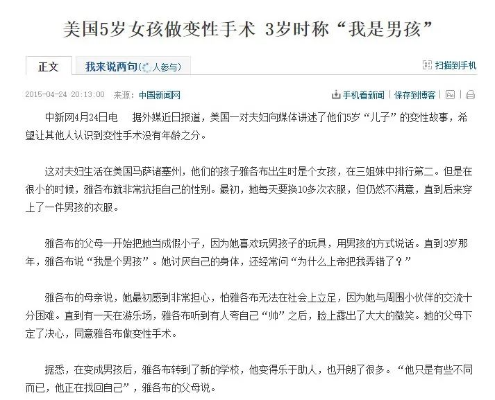 (对这么小的孩子做变性手术,真的是丧心病狂)