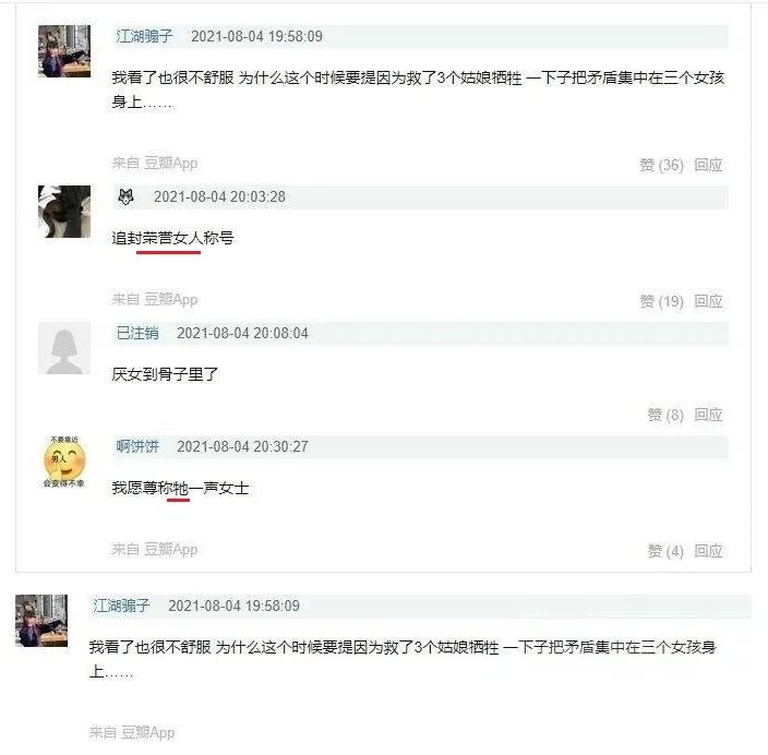(豆瓣女拳用“牠”和“荣誉女性”称呼17岁的少年英雄)