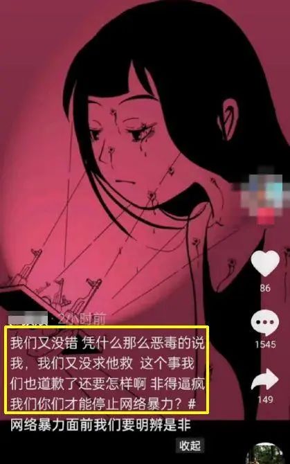 另一方面,他们则在分工合作,一些人假冒被救女性在网络上发表忘恩负义、恩将仇报的言论,比如说什么“他死了也是活该”、“又没叫他救”等等这样的丧心病狂的言论;
