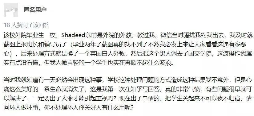 2、该名黑人沙迪德在任教期间经常骚扰女学生,为何学校不管不顾,不做处理?