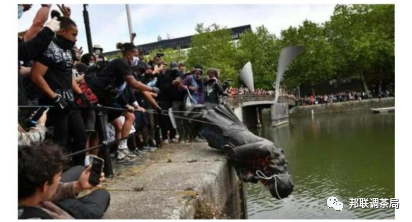 奴隶贩子的雕像被推入河中,也算是罪有应得。