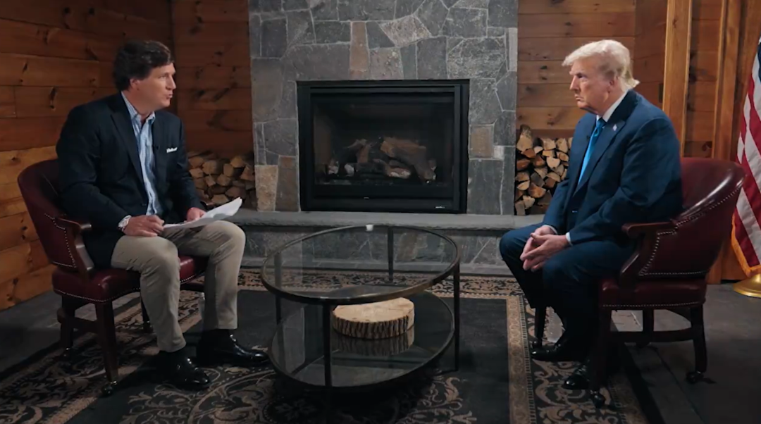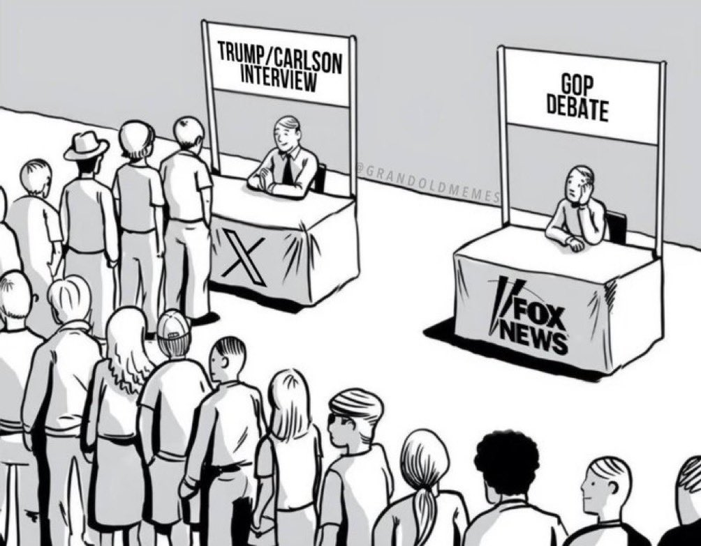 同样是本周三晚上福克斯台直播共和党初选辩论的同一时刻,懂王不仅不去参加辩论,反而和美国“媒体一哥”塔克·卡尔森(Tucker Carlson)搞了一场线上直播,除了打擂台叫板之外也是对自己号召力和支持度的红果果地展示(炫耀)。