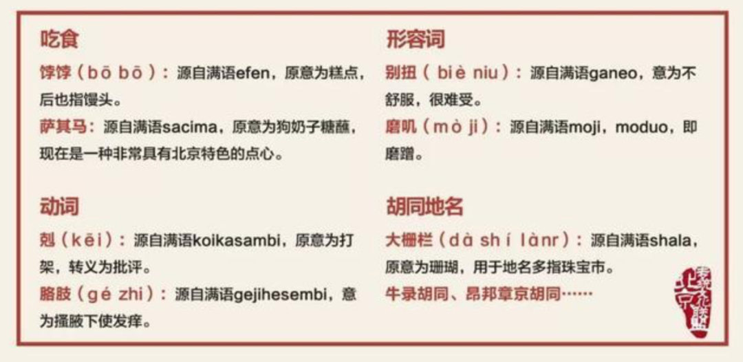 )(《北京话里的满语词》爱新觉罗.瀛生)等等都是来自于满语。