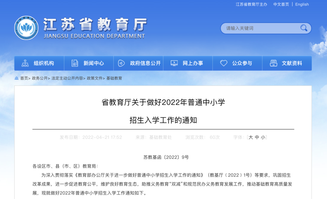 本月21日,江苏省发布了《2022年普通中小学生招生入学的工作通知》,明确了从2022年开始,取消少数民族中考加分政策,江苏省也是全国第一个取消少数民族加分的省份。
