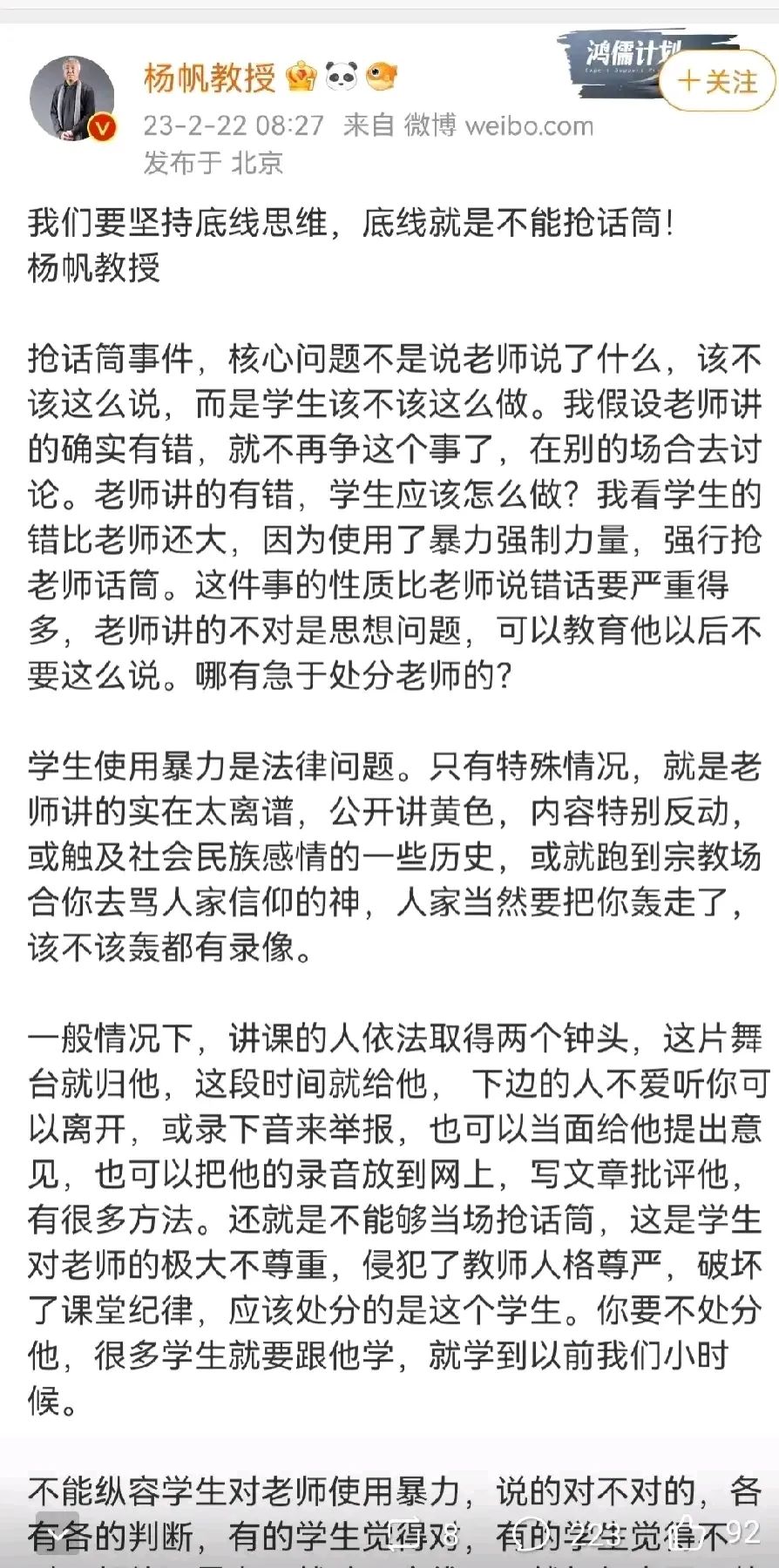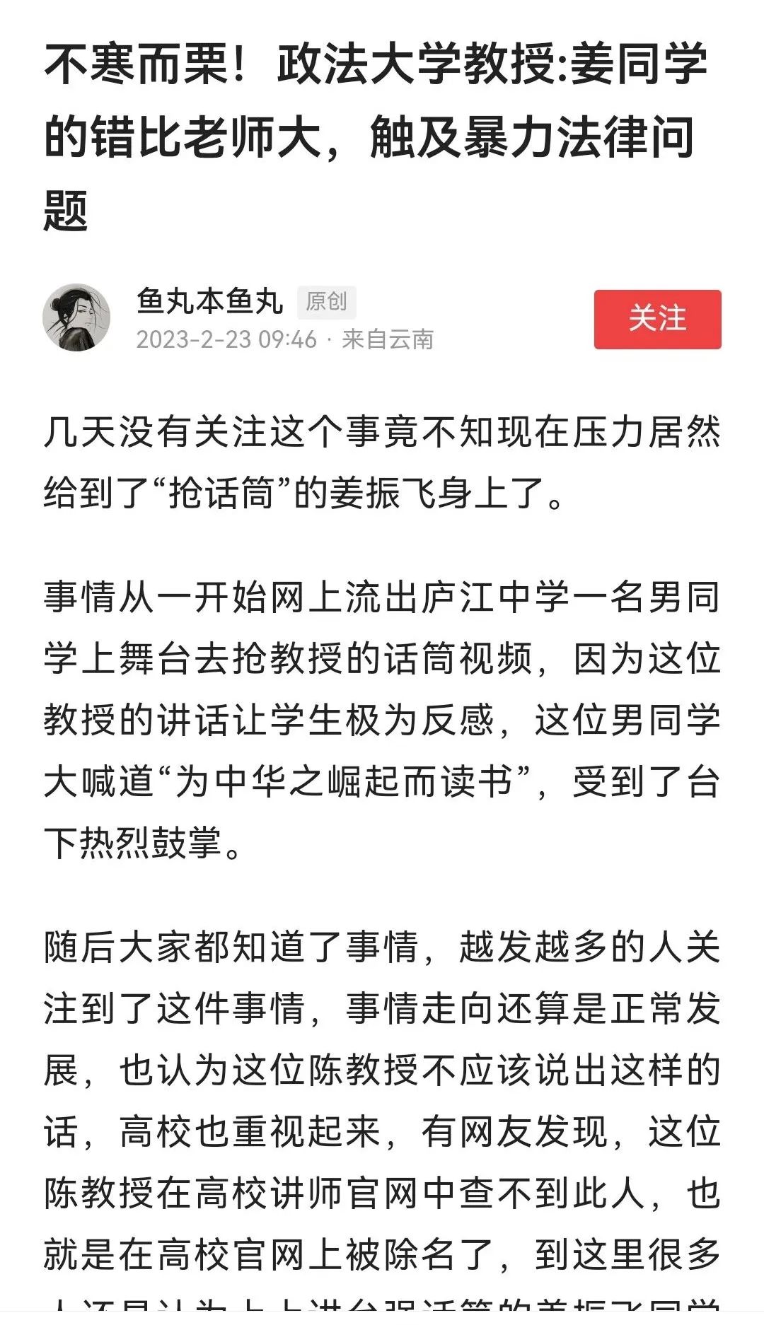 至于说那位抢过话筒的孩子,人家实验班尖子生,有智;众人都不满,唯独他敢上台抢话筒,有勇;不暴力对抗,口头还击,几句话精准直指问题本质,摆出的态度占据道德高地,有谋;敢说出“为中华之崛起而读书”,有心气;博得同学满堂彩,教师鼓励,网友赞同,有人和。就算社会99%的人是混子,他也极大概率是那1%!这个孩子,他努力读书是真有可能为中华之崛起添砖加瓦的。如此优秀的人,他就应该为“中华崛起”而努力,如果连这么优秀的孩子都以赚钱为目标,跑去和外国人“杂交”了,那才真是我们民族的悲哀!