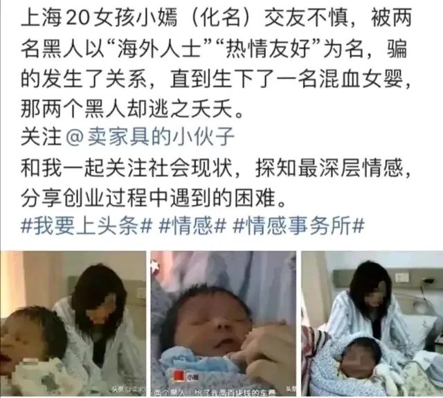 尽管她们中的一些人可以将自己装扮成“人上人”,认为和外国人交往是一件相当了不得的事情,比如那个被英国白人抛弃的、带着混血女儿回到国内要找寻“年薪50万,身高185”的女子,不管其怎么炒作,也是无济于事的。