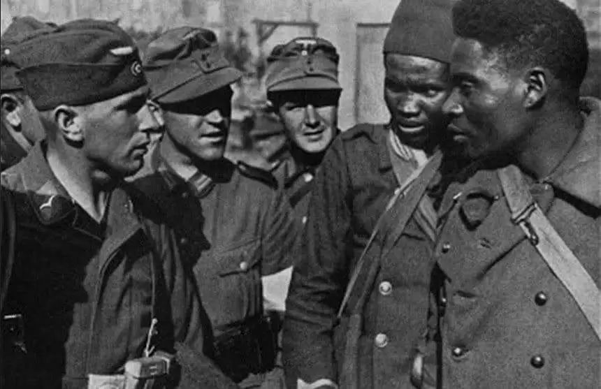 戴高乐逃往英国组建流亡政府,由于法国国内已无兵可调,只得打起了殖民地的主意,于是乎大量的来自于非洲和北非的年轻人加入到了法国军队中来。