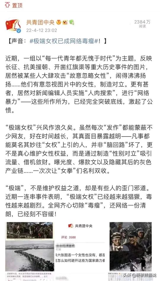 最近共青团中央的微博充斥女拳的事情可谓是闹得满城风雨,共青团中央发文批判女拳,非但没有让女拳沉寂,反而像打捅了马蜂窝一样,女拳分子们疯狂地叫嚣了起来。