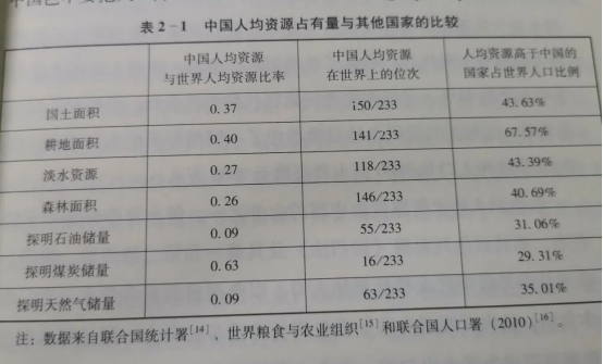 世界上只有极少数的国家在几乎所有自然资源的人均占有量都像中国这样居于中间甚至于靠前的位置。