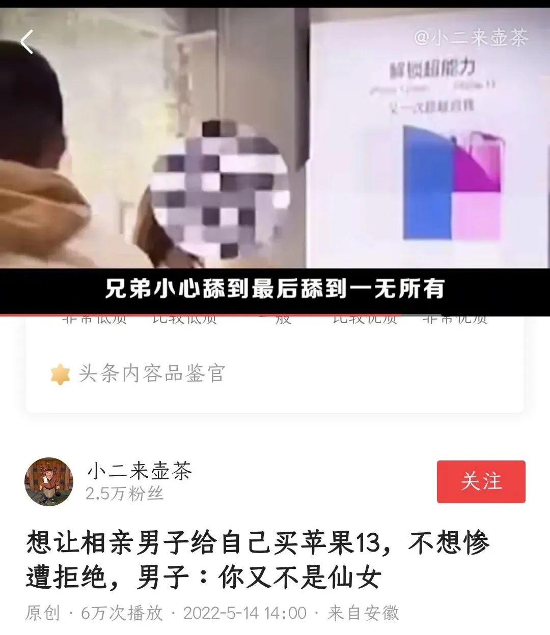 一个女子第一次相亲,就把男子带到了手机店,看中了一台价值万元的苹果手机,要求男子买单。