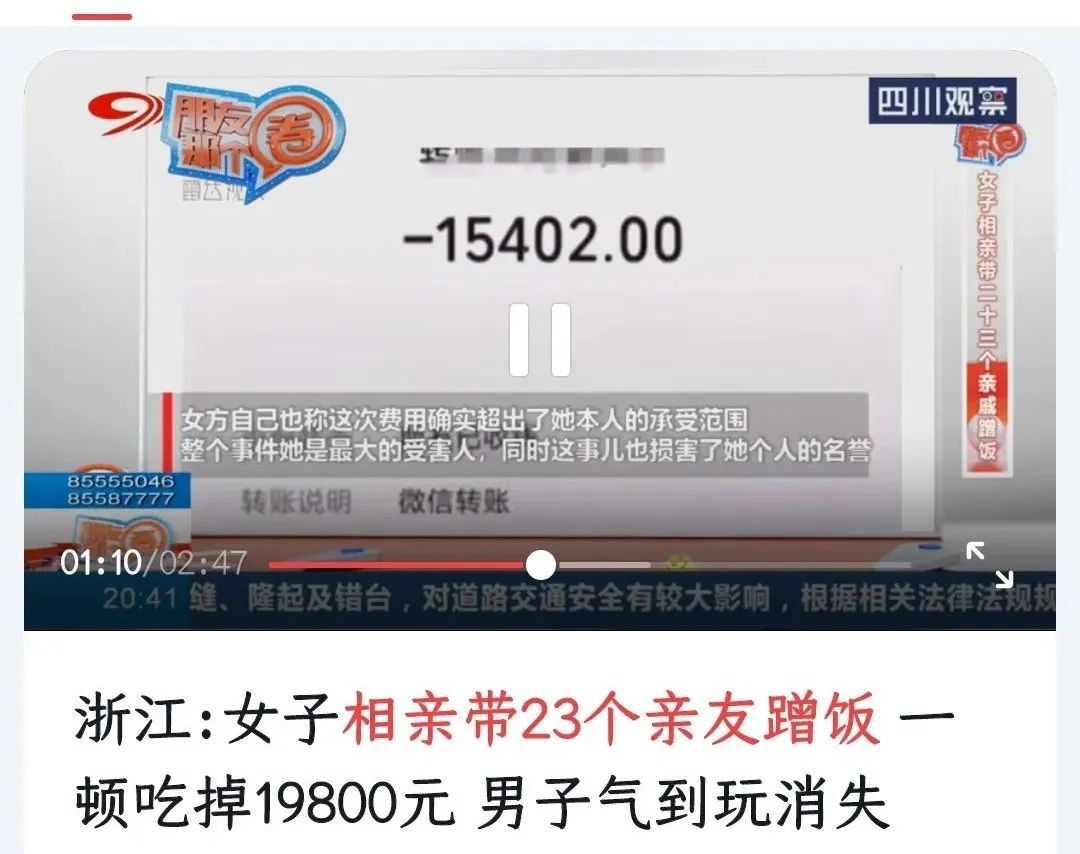 我们时常在网上看到这样的新闻,男女双方相亲,男方孤身一人,女子却带着自己的七大姑、八大姨数十人,一起前来蹭饭,美其名曰“把把关”,而实际上就是想要让男方做冤大头,狠狠地敲诈他一笔。