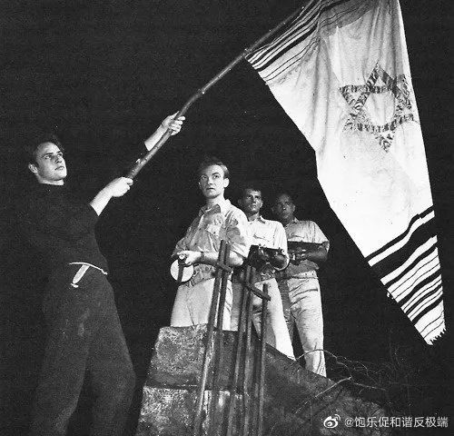 1946年,白兰度出演百老汇舞台剧《一个国旗的诞生》高举以色列旗