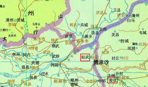马非百的推测依据是他在开封时,经常有风沙。是否合理,暂且不论。窃以为,拆解博浪沙的地名,沙当是指河滩沙地。而博浪,《史记 秦始皇本纪》中“博浪沙”本作“博狼沙”,或许是河滩附近有树林,树林中经常有狼出没,故名博狼沙,后讹为博浪沙。