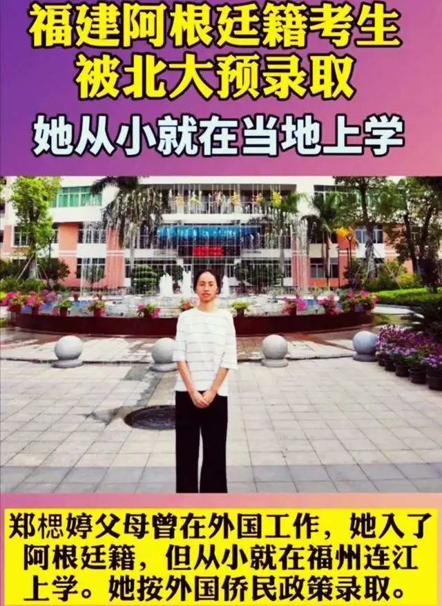 比如说就有一名阿根廷籍的福建孩子,其本身的学习成绩不足以进入北大,但因为她的父母都是阿根廷籍,所以她也就顺理成章拥有阿根廷国籍,得以顺利进入北大。