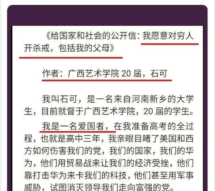 还有一名署名为广西某大学的学生也是持这样的观点,他认为中国应该减少“