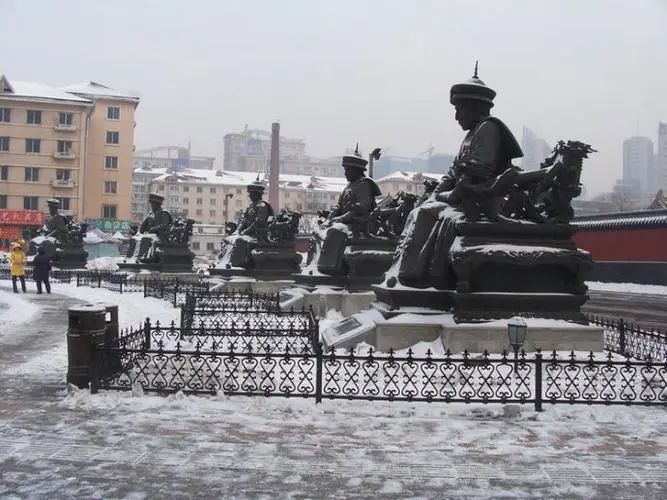 而在一个广场之中,建造了满清12帝王的铜像。