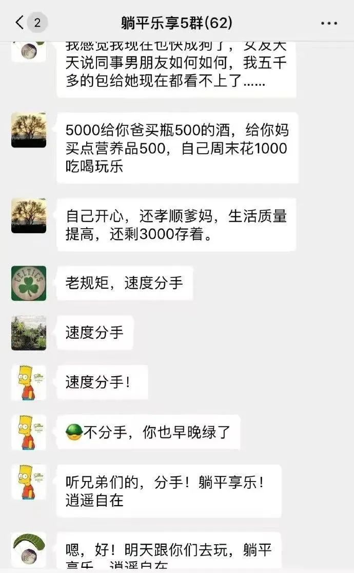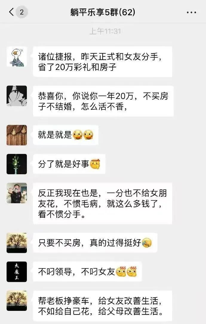 (从这个群的消息来看,“躺平”已成为越来越多男性的共识)
