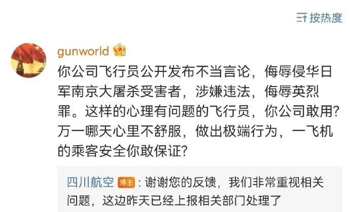 他的这些言论一经发现,立刻引起了全国人民的震怒,在无数网友的接力之下,他的身份也很快被核实了出来,原来是四川航空公司的一名飞行员。