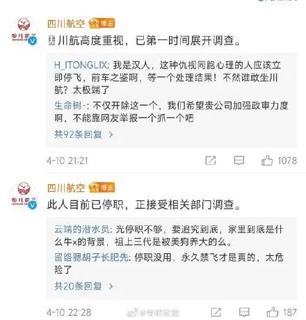 在网友们的举报之下,四川航空将其解职,并上报相关部门。