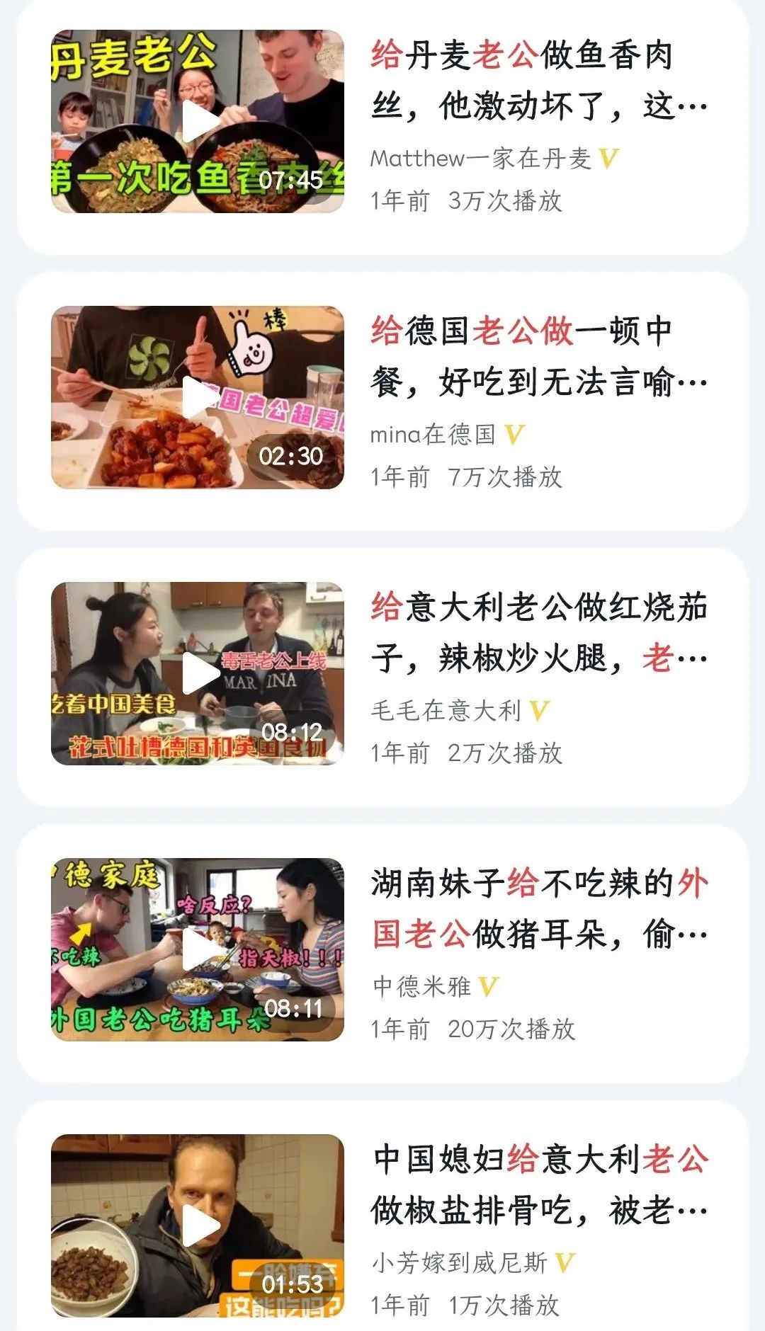 这些女人,没有中国朋友,应该也没有社交,只能围着男人的关系转,然后当保姆当免费厨师,成就感特别高,在镜头里笑嘻嘻的,显得很开心,如果还能推广一下中国文化,关注度就会更高了。