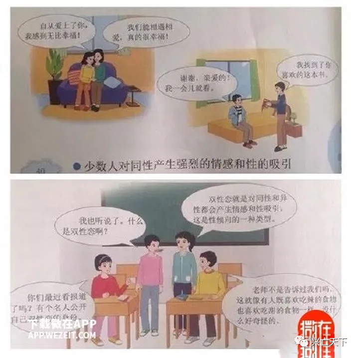 这样的教材只会让同性恋者得寸进尺,时间久了,他们也就会更加的肆无忌惮。